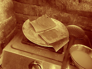 चूल्हों के साथ गोलगप्पा बनाने का सामूहिक किचन भी था। रास्ते में हमने चार पाँच